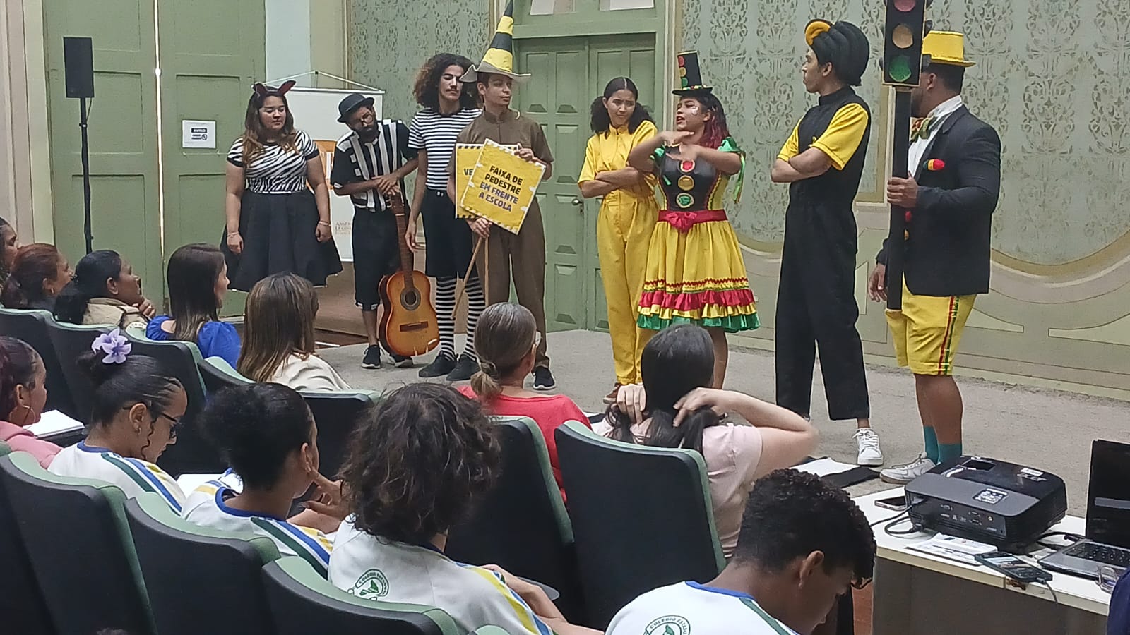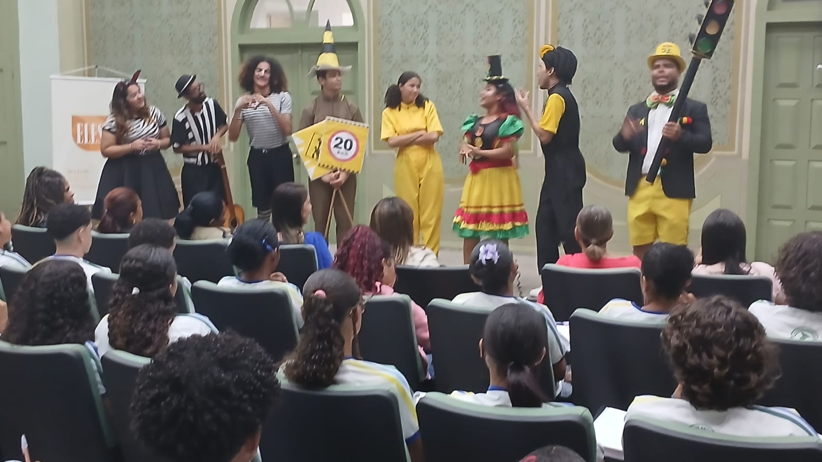 “Trabalhamos com diversos públicos com toda faixa etária de idade; instituições públicas e privadas. O grupo Cones de Teatro faz parte da coordenadoria e é bem eclético; trabalha diversas temáticas, do infantil ao idoso, diretamente nas vias de trânsito para orientar e conscientizar; além da realização de trabalhos de impacto social mostrando o que acontece quando a gente acelera demais e não olha ao redor. A partir do momento que a gente pisa o pé na rua, faz parte do trânsito; a gente associa o trânsito a veículos e o trânsito é constituído por pessoas por isso que o trabalho educativo é muito importante. para desmistificar que a SMTT não opera apenas multas, mas também trabalha em educação. Hoje estamos aqui na Elese, numa parceria, planejando para desenvolver esse projeto uma vez ao mês, com a participação das escolas dentro das temáticas do Estatuto da Criança e do Adolescente (ECA), da Lei Maria da Penha e alguns trechos da Constituição. Trabalhar de forma lúdica de acordo com a faixa etária”, informa.