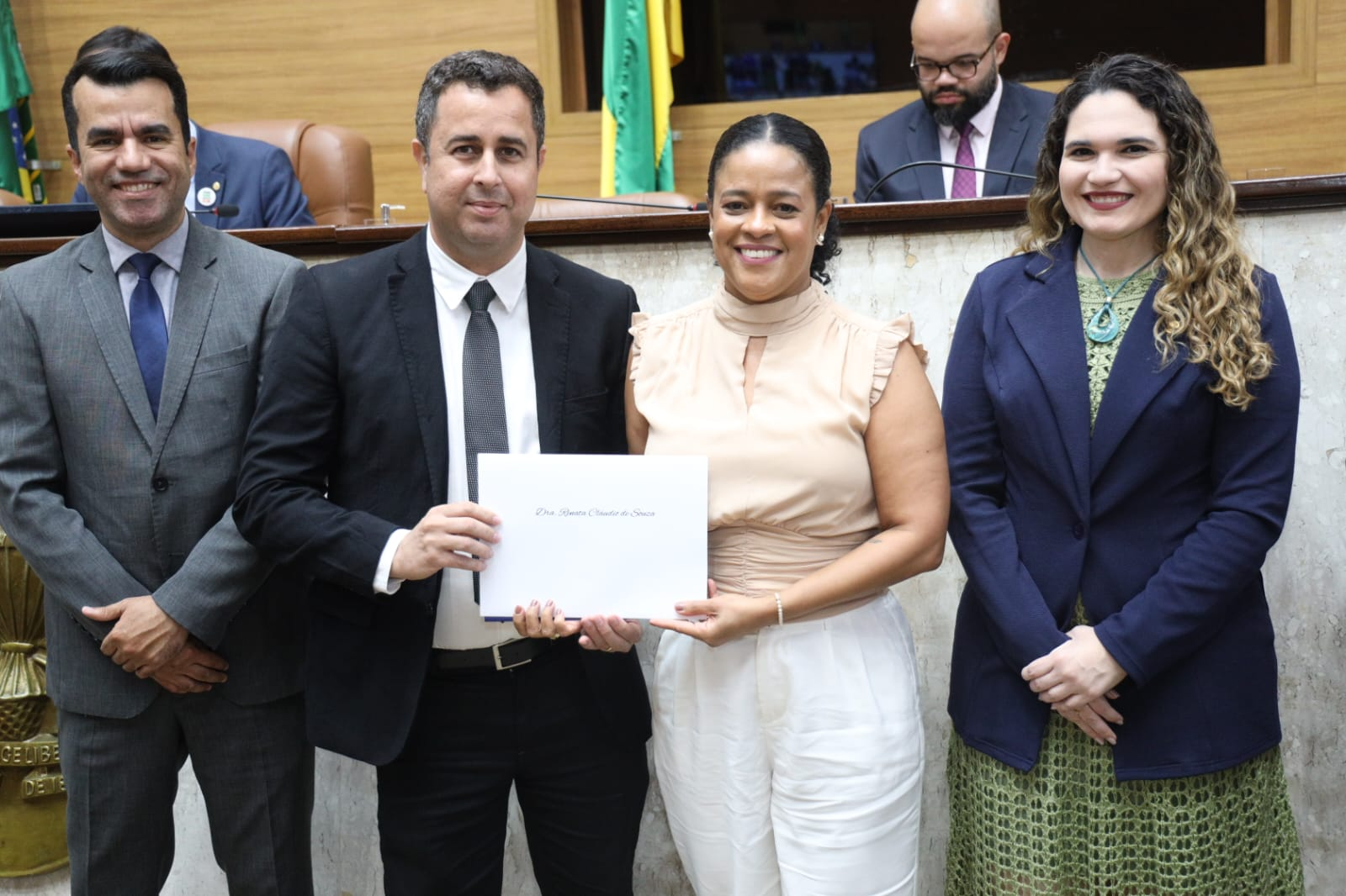 “Esse reconhecimento é de toda a nossa profissão. A maioria dos homenageados hoje são mulheres, mulheres pardas, pretas, e isso representa fielmente a cara da nossa categoria. É muito lindo ver isso aqui no plenário.”