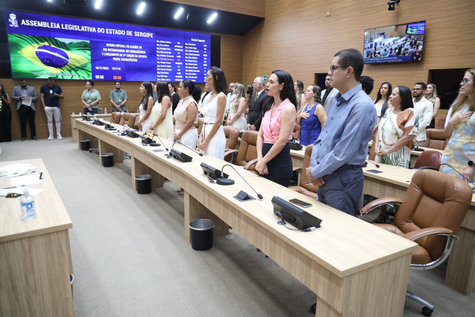 A Assembleia Legislativa de Sergipe (Alese) realizou, na tarde desta terça-feira (18), uma Sessão Especial em homenagem ao “Dia Internacional do Farmacêutico”, celebrado mundialmente em 25 de setembro. A solenidade, de autoria do deputado Georgeo Passos (Cidadania), reuniu representantes da categoria, familiares e autoridades no plenário da Casa, e culminou com o lançamento da 5ª edição da Revista Perfil Farmacêutico, publicação anual do Conselho Regional de Farmácia de Sergipe (CRF/SE).