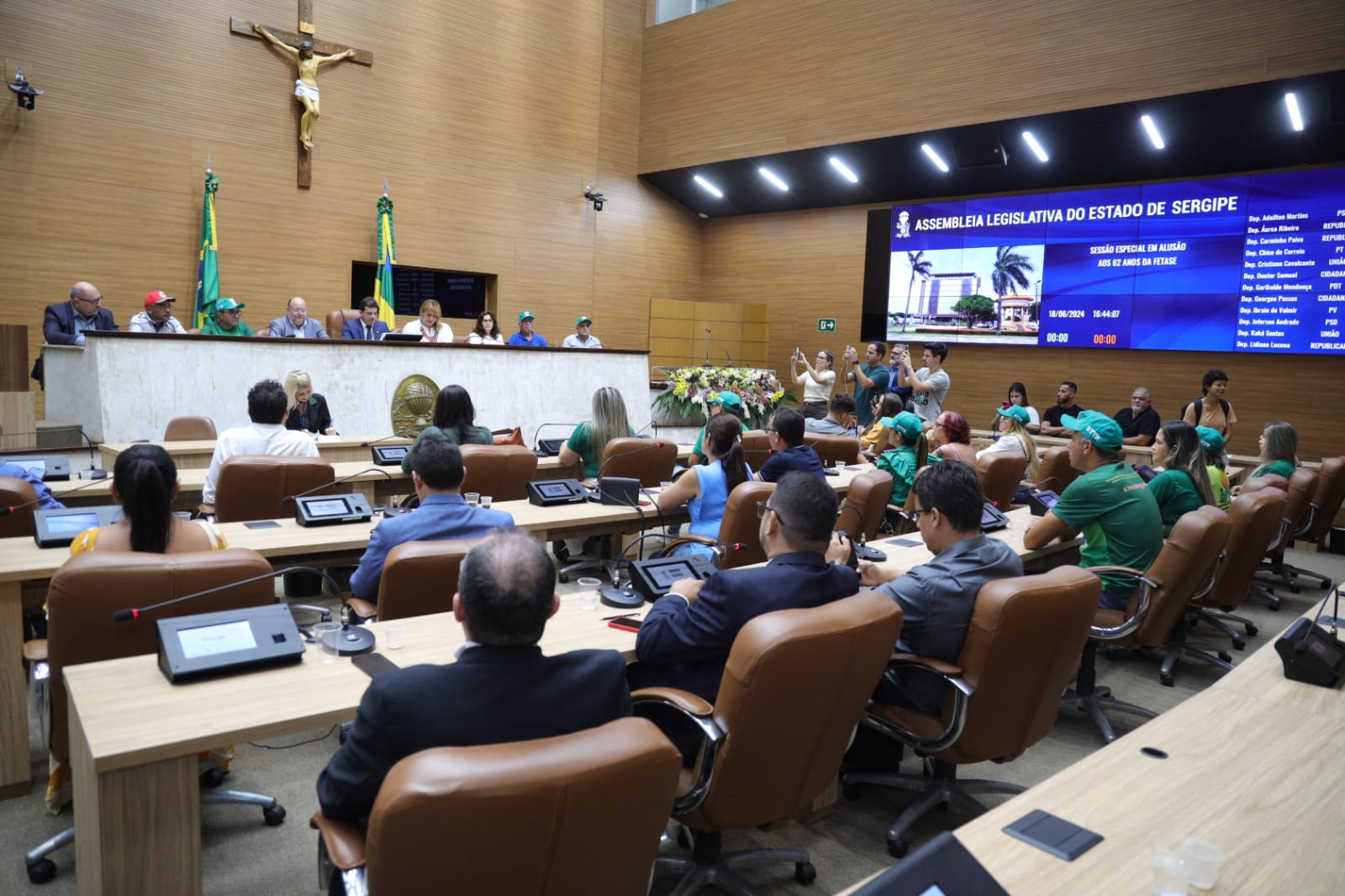 O deputado Paulo Júnior (PV), realizou na tarde desta terça-feira (18) no plenário da Assembleia Legislativa de Sergipe (Alese), uma Sessão Especial com a finalidade de comemorar os 62 anos da Federação dos Trabalhadores na Agricultura do Estado (Fetase), que tem como principal bandeira a Reforma Agrária.