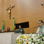 Ao receber a homenagem, Dra. Sheyla fez uso da palavra para agradecer a outorga e refletir sobre sua trajetória profissional e afetiva em terras sergipanas.