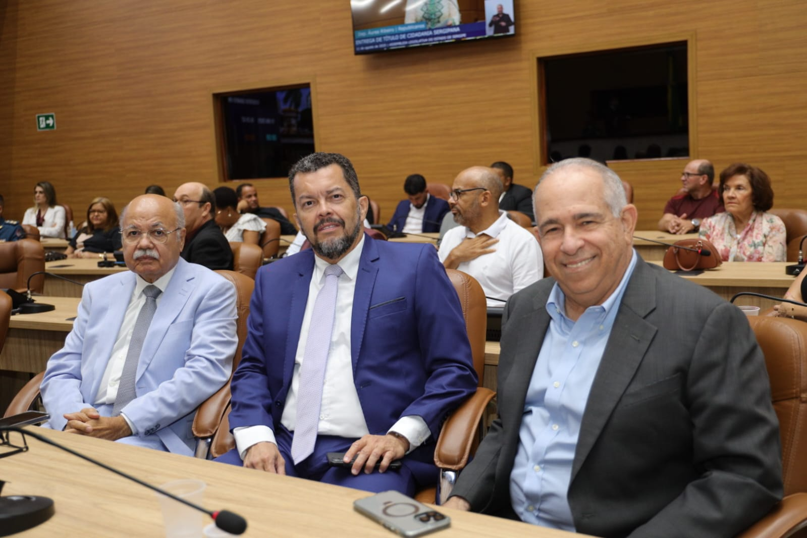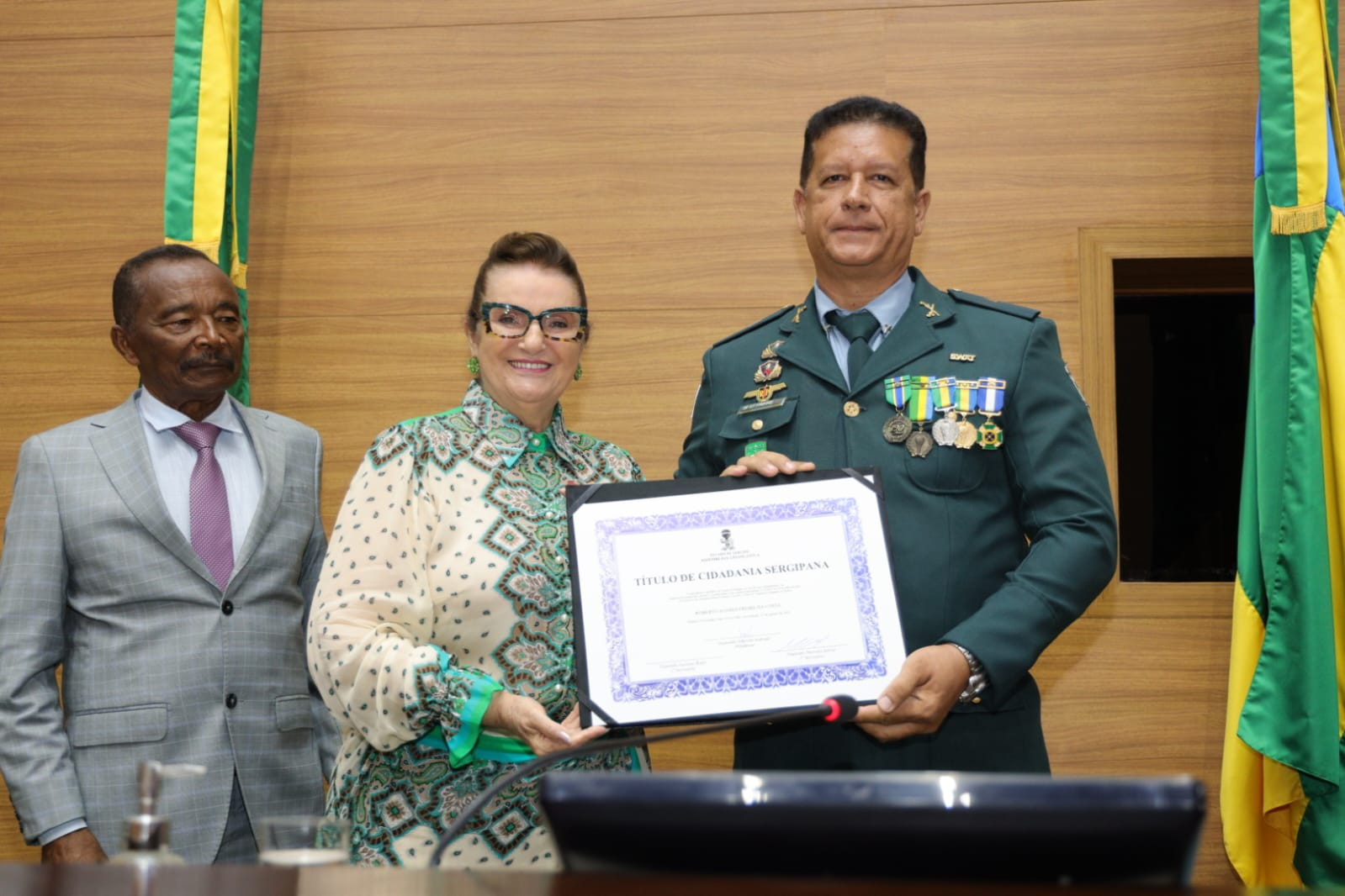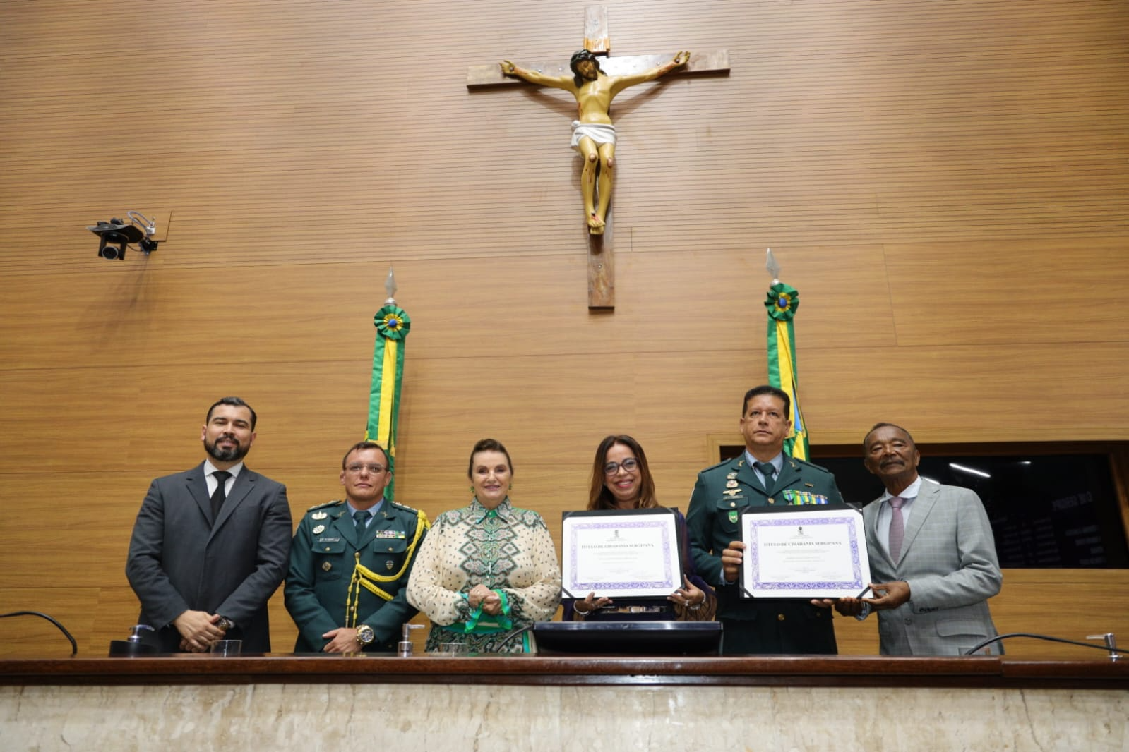 Na tarde desta segunda-feira (11), o Plenário da Assembleia Legislativa de Sergipe (Alese) foi palco de mais uma solenidade marcada pela emoção, reconhecimento e gratidão. A Casa concedeu o Título de Cidadania Sergipana a duas personalidades que, mesmo não sendo naturais do Estado, dedicaram grande parte de suas vidas à promoção da segurança pública, saúde, educação e bem-estar da população sergipana.