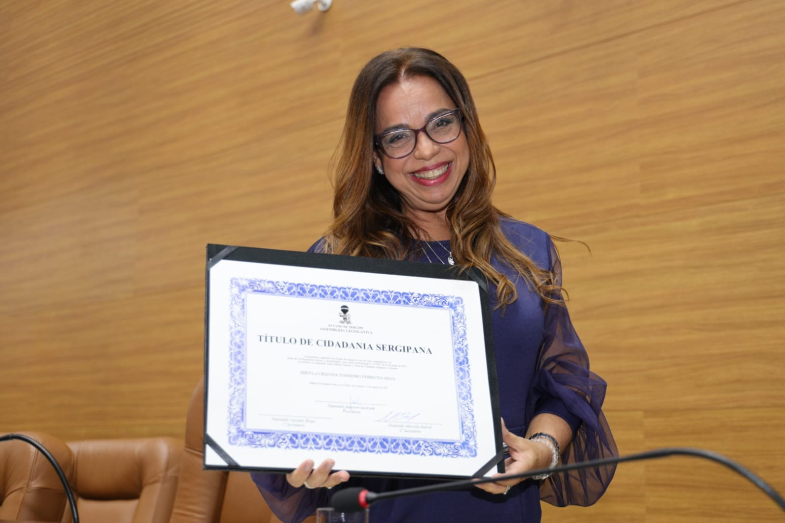 “É curioso… Quando cheguei a Sergipe, ainda criança, recebi na escola um livrinho chamado ‘Sergipe, meu estado; Aracaju, minha terra’. Aquele livrinho foi um marco. Desde então, parece que internalizei que eu seria, de fato, sergipana. Aqui fiz toda a minha trajetória: escola, faculdade, conquistas profissionais. Meu filho nasceu aqui. Tudo de melhor que construí na vida foi Sergipe que me deu. Estou profundamente emocionada e grata por esse reconhecimento. Muito obrigada!”