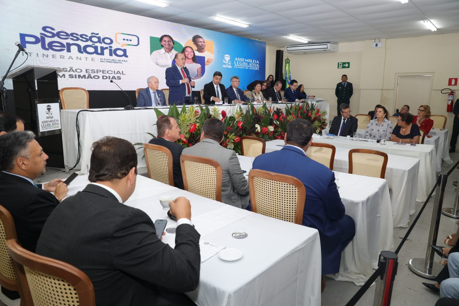 Participaram da Sessão Itinerante da Alese, os deputados Jeferson Andrade, Garibalde Mendonça (PDT), Luciano Bispo (PSD), Luciano Pimentel (PP), Kaká Santos (União Brasil), Luizão Donatrampi (União Brasil), Marcos Oliveira (PL), Cristiano Cavalcante (União Brasil), Georgeo Passos (Cidadania), Adailton Martins (PSD) e as deputadas Linda Brasil (Psol), Carminha Paiva (Republicanos) e Áurea Ribeiro (Republicanos); Paulo Júnior (PV), Ibrain de Valmir (PV) o secretário-geral da Mesa Diretora, Igor Albuquerque, o secretário de estado de Articulação com os Municípios, Venâncio Fonseca, o prefeito Cristiano Viana, a presidente da Câmara Municipal de Simão Dias, Irailde de Oliveira Souza, vereadores, secretários municipais, integrantes do Movimento Camponês Popular de Sergipe, o ex-prefeito José Matos Valadares, representantes da sociedade civil organizada e a população de um modo geral.