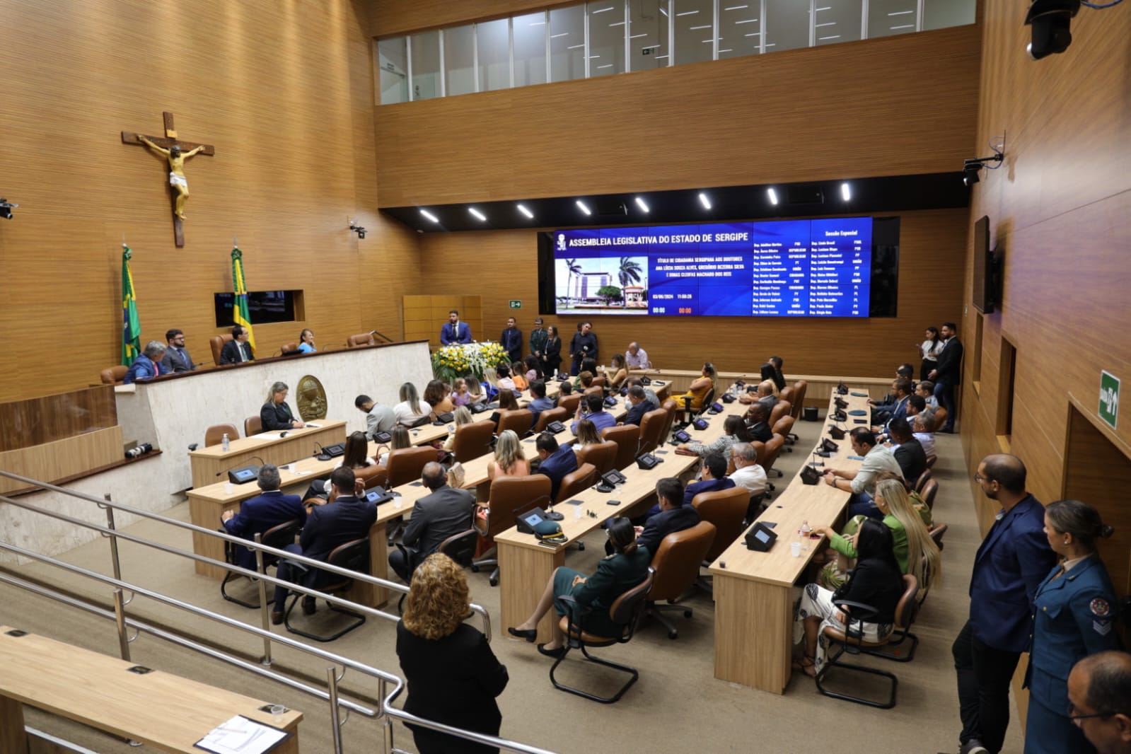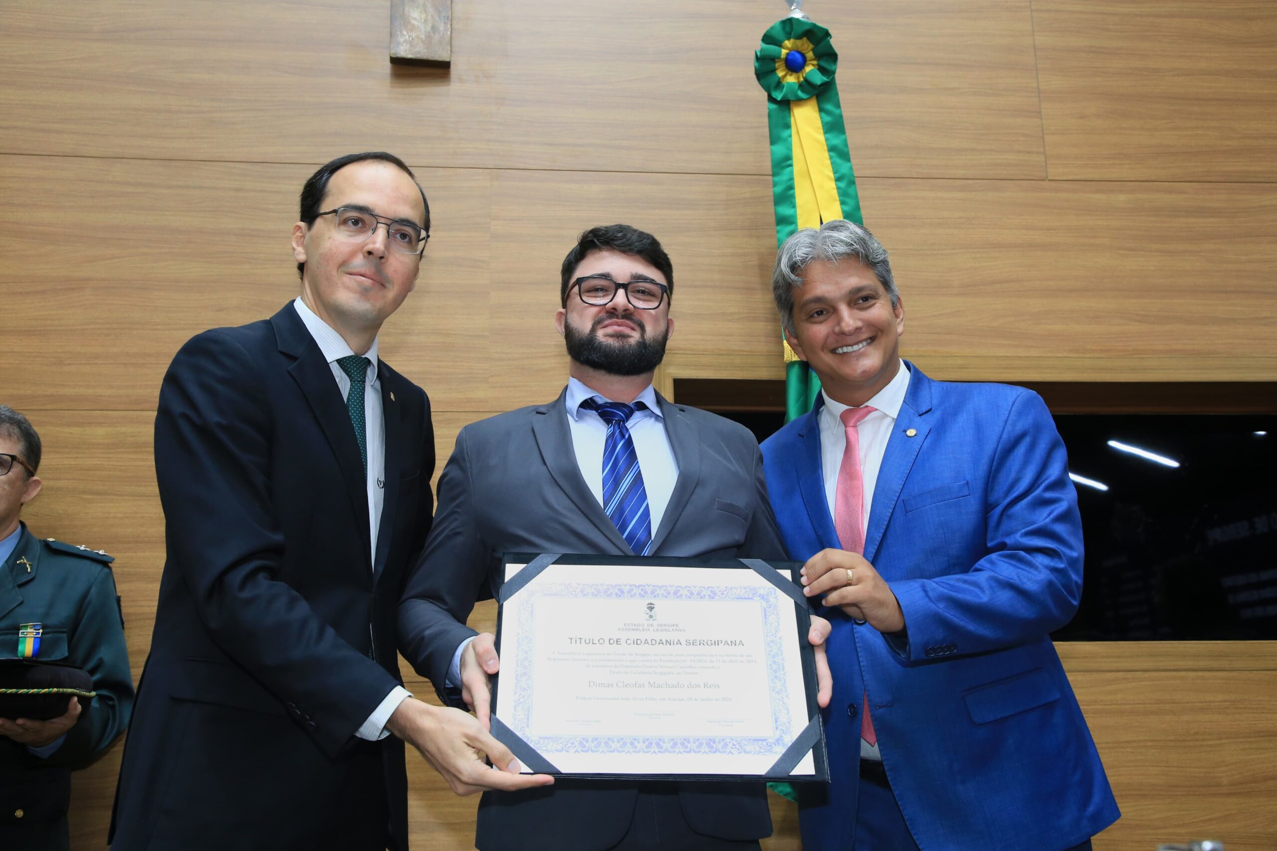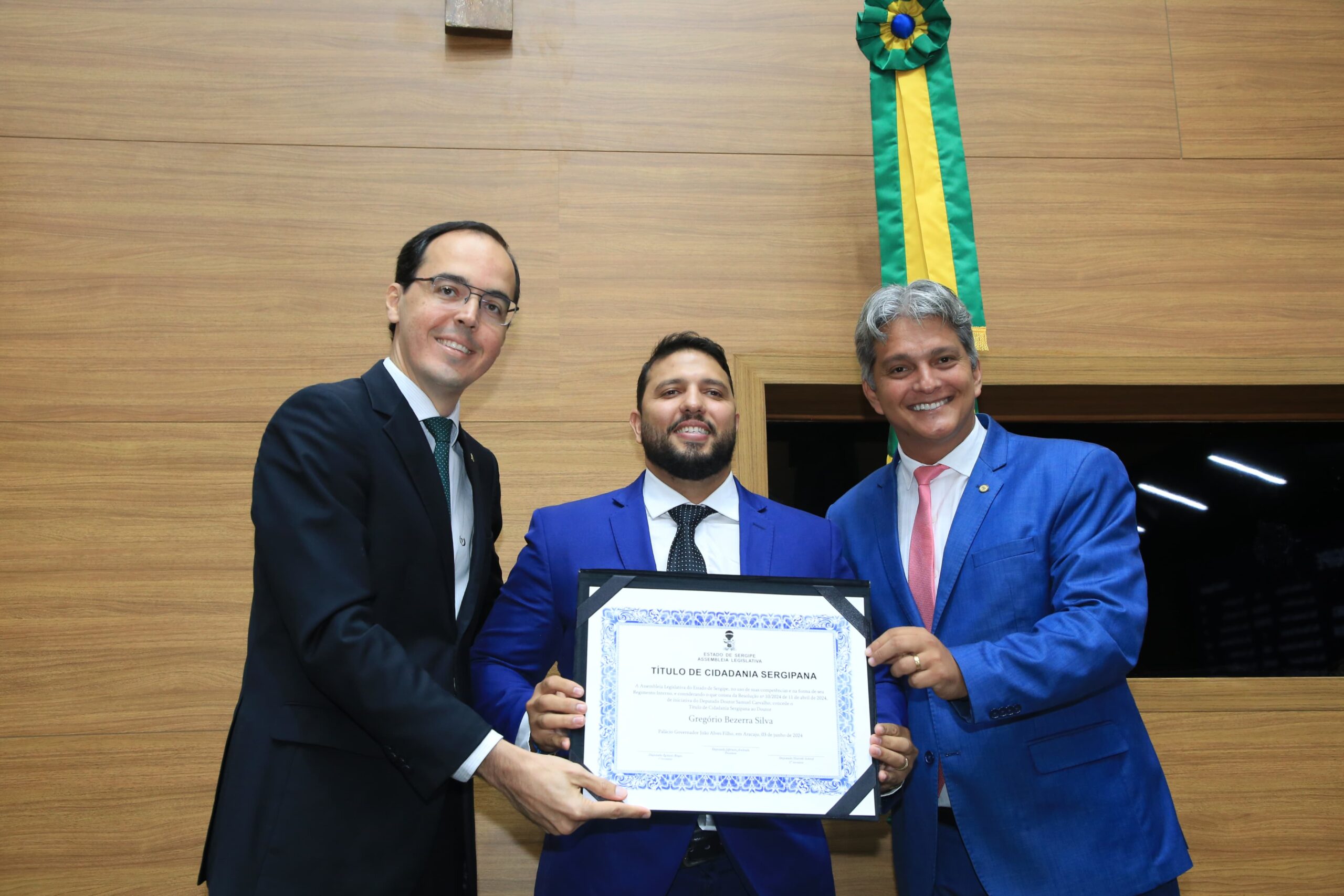 Os Títulos de Cidadania foram entregues durante Sessão Especial no plenário da Assembleia Legislativa de Sergipe. A sessão foi presidida pelo deputado Georgeo Passos (Cidadania) que compôs a Mesa junto com Doutor Samuel Carvalho e os três homenageados.