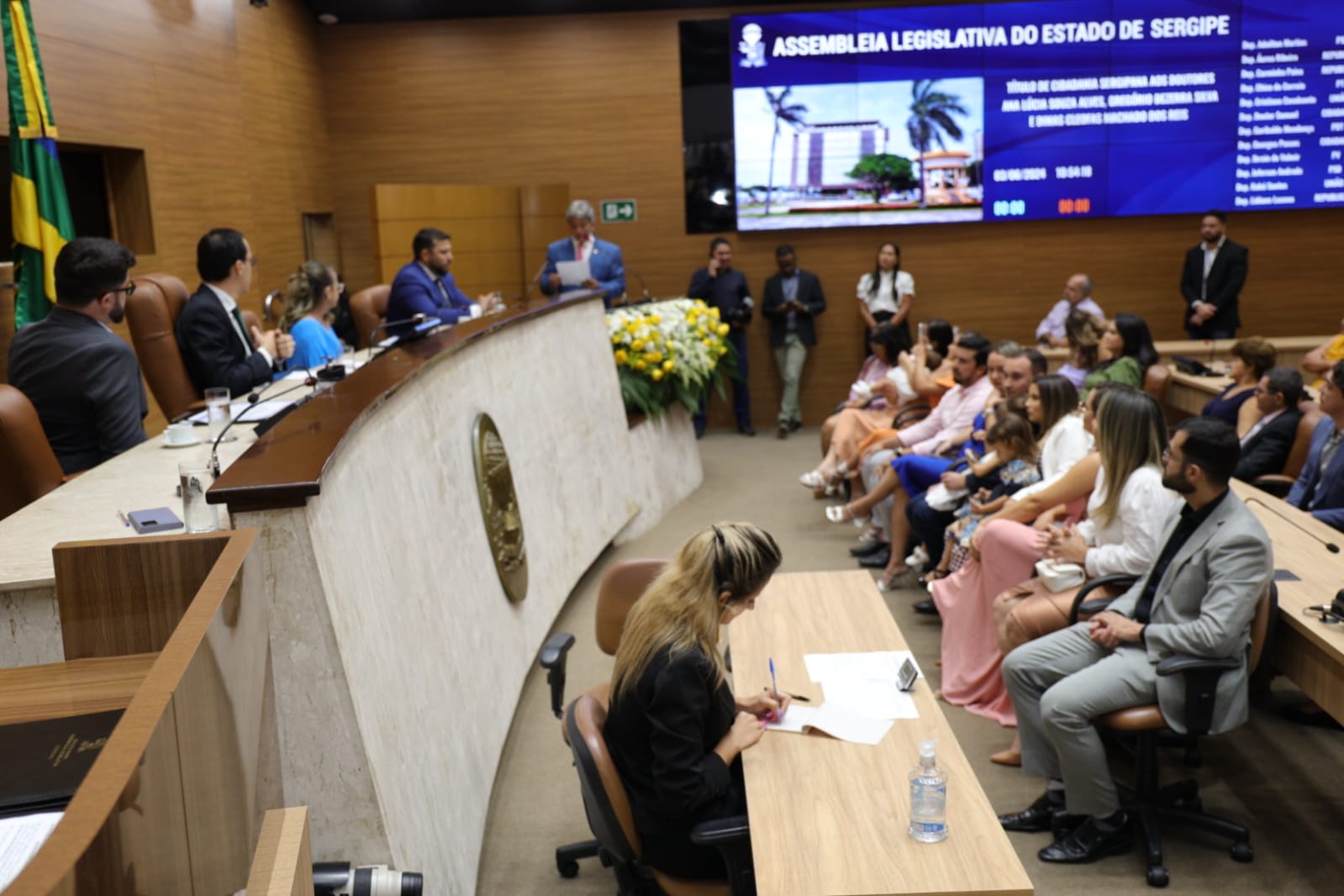 Foi realizada, nesta segunda-feira (3), a Sessão Especial de entrega de Título de Cidadania Sergipana ao delegado da Polícia Civil, Gregório Bezerra da Silva, ao médico Dimas Cleofas Machado e à advogada Ana Lúcia Souza.