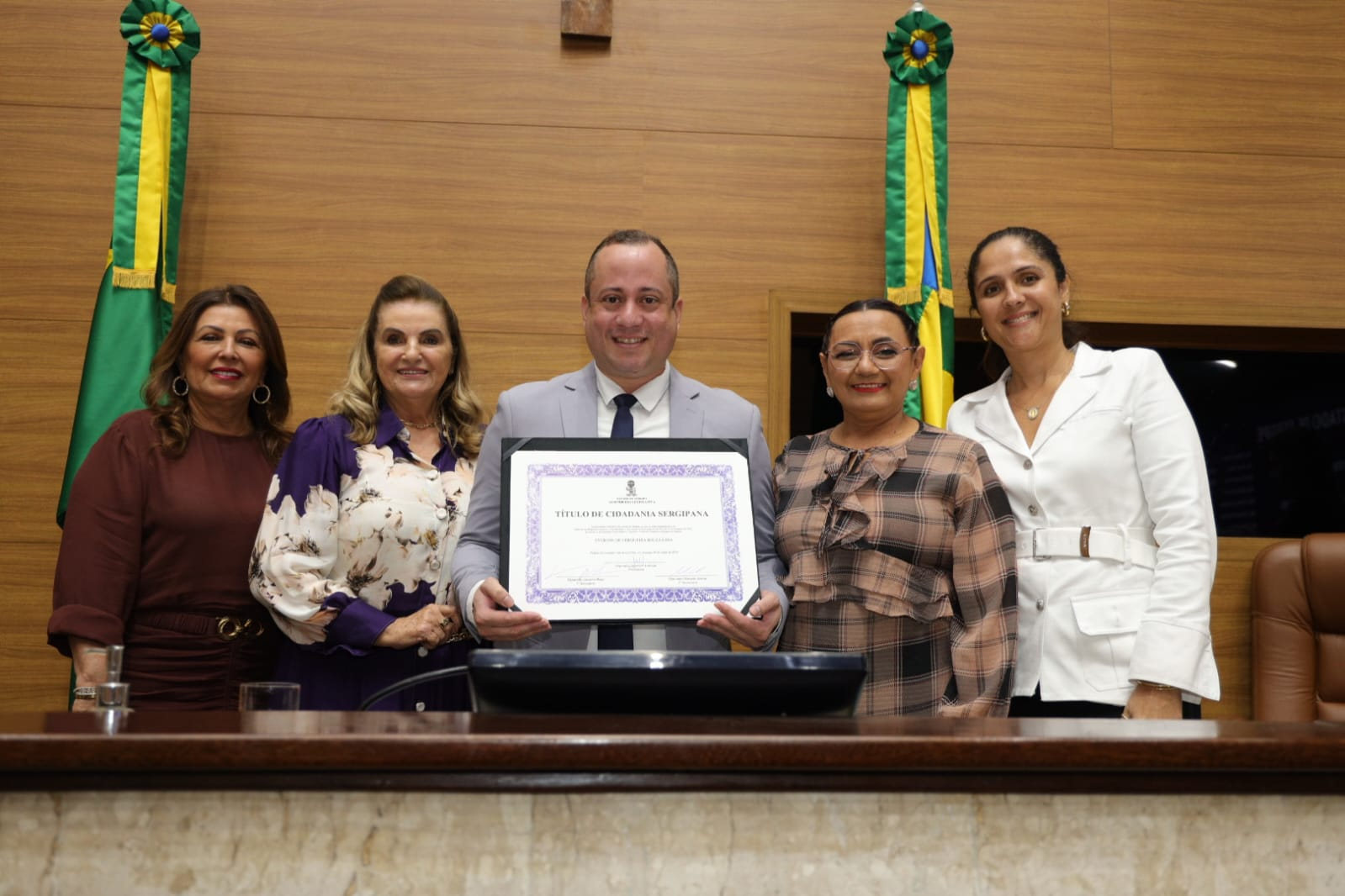 “É difícil traduzir em palavras tudo o que sinto neste momento. São treze anos de trajetória em Aracaju que marcaram profundamente minha vida, tanto no âmbito pessoal quanto profissional. Esta cidade me acolheu, me fez crescer e me permitiu descobrir um propósito mais profundo, especialmente no campo social. Compreendi, ao longo desse tempo, que beleza vai além da estética: ela é um instrumento de cuidado, de autoestima e de transformação. Os primeiros anos foram desafiadores; confesso que, por diversas vezes, pensei em retornar. No entanto, os laços que construí, inicialmente com amigos e, em seguida, com minhas clientes foram fundamentais para minha permanência. Essas relações me fortaleceram e despertaram em mim o desejo de empreender, de criar algo duradouro que, além de realizar um sonho pessoal, também gerasse emprego e renda para famílias sergipanas. Hoje, ao receber este título, sinto-me profundamente honrado e grato por fazer parte desta terra que me transformou”, afirmou o homenageado.