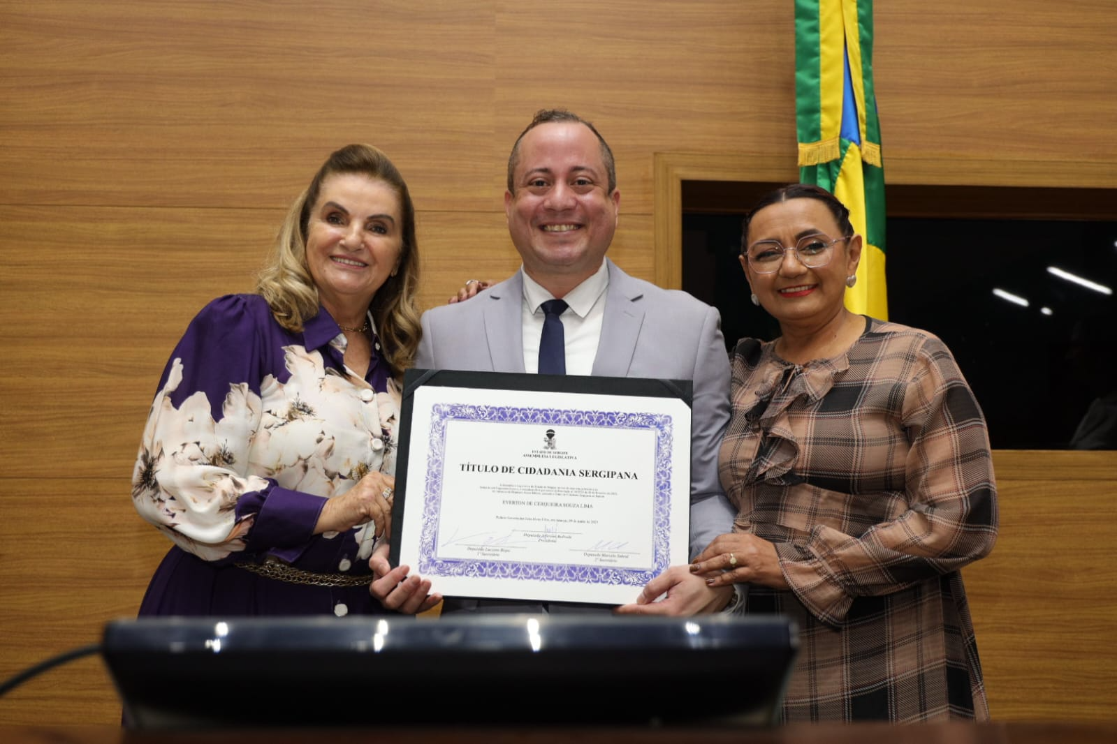 Em uma Sessão Especial marcada por emoção, reconhecimento e gratidão, realizada nesta segunda-feira (9), na Assembleia Legislativa de Sergipe (Alese), o renomado profissional e empresário da área da beleza, Everton de Cerqueira Souza Lima, conhecido pela sociedade aracajuana como Ton Lima, foi agraciado com o Título de Cidadania Sergipana. A homenagem foi proposta pela deputada Áurea Ribeiro (Republicanos).