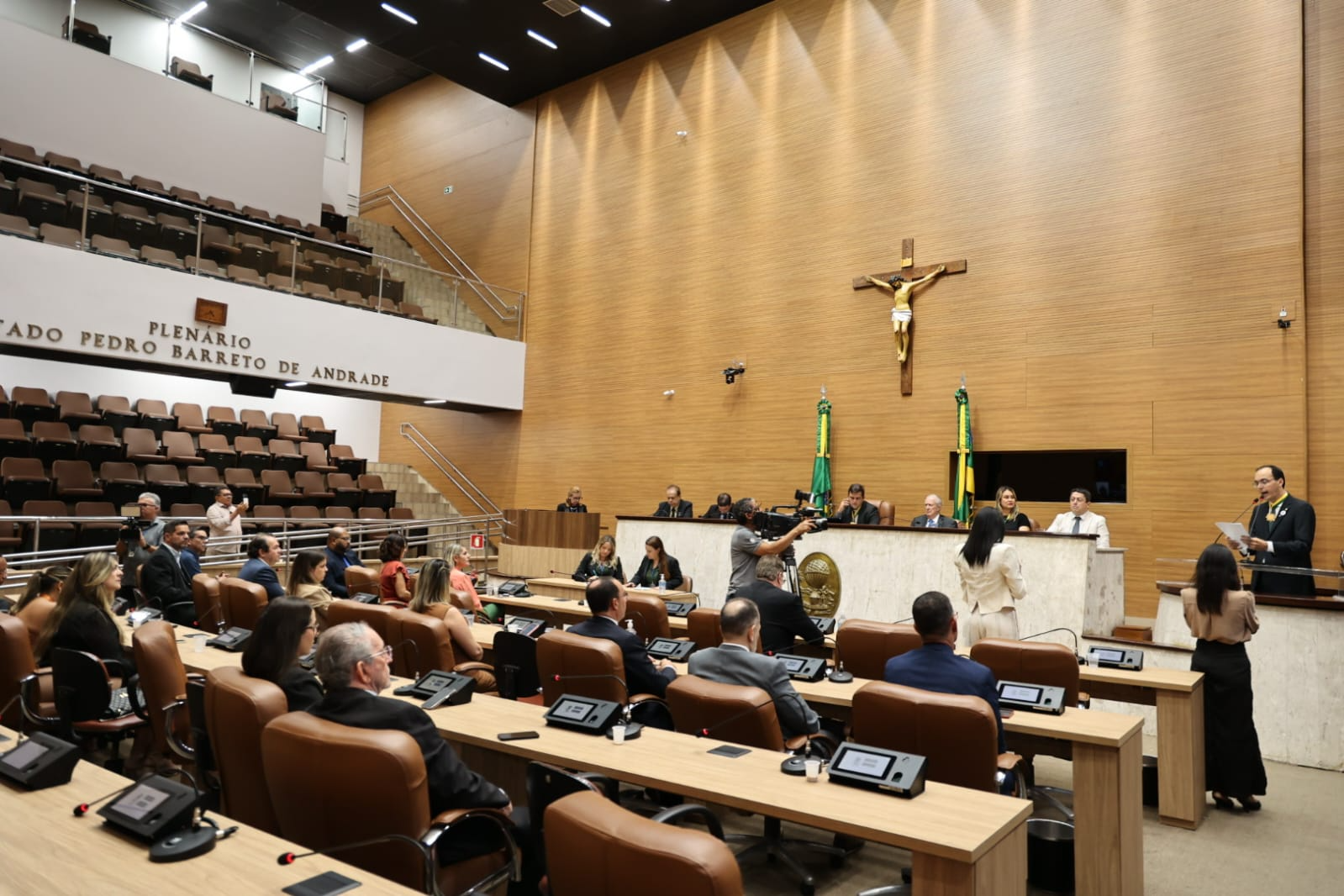 A solenidade aconteceu no plenário da Alese, com as presenças dos deputados Paulo Júnior (PV); da deputada e vice-líder do Governo na Alese, Kitty Lima (Cidadania); do deputado Marcos Oliveira (PL); de jornalistas, como o diretor da TV e Rádios Aperipê (AM e FM), Carlos Batalha; de colaboradores da emissora, como o ex-deputado estadual e atual Diretor-Presidente da Empresa Sergipana de Turismo (Emsetur), Fabiano Oliveira; além de funcionários e diretores da TV Atalaia e de familiares e amigos do empresário Walter Franco.