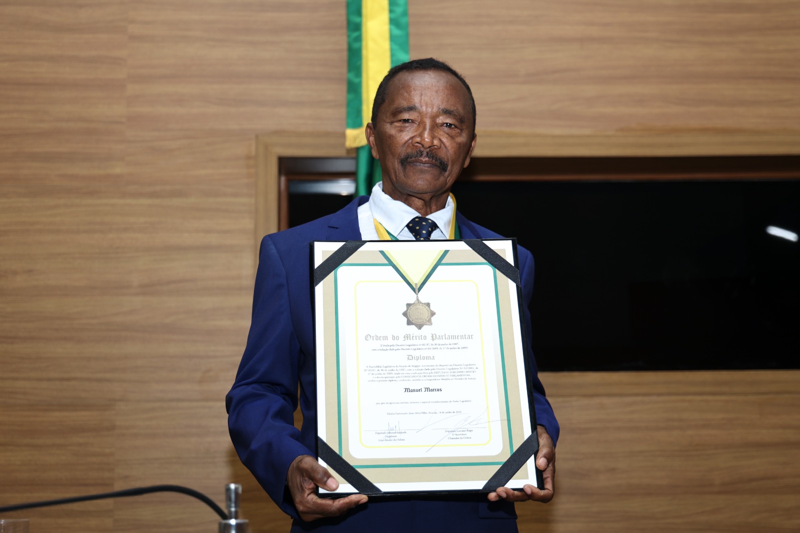 A solenidade de entrega da Medalha da Ordem do Mérito Parlamentar foi realizada durante sessão especial no plenário da Assembleia Legislativa de Sergipe. O vice-presidente da Alese, deputado Garibalde Mendonça presidiu a sessão. Além do homenageado e do propositor da Medalha, a Mesa foi composta pelo deputado Adailton Martins, o prefeito Edvaldo Nogueira e o presidente da Associação Sergipana do Ministério Público, Luiz Fausto Valois.