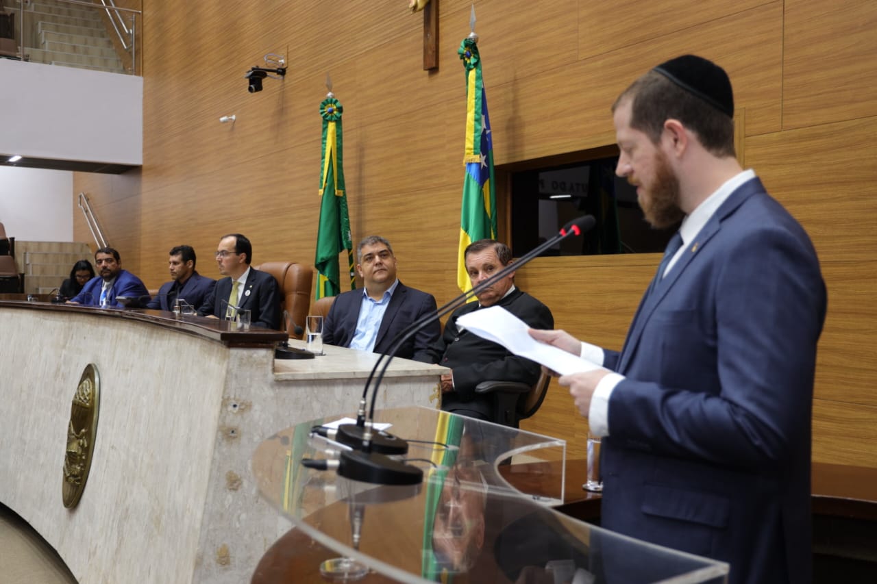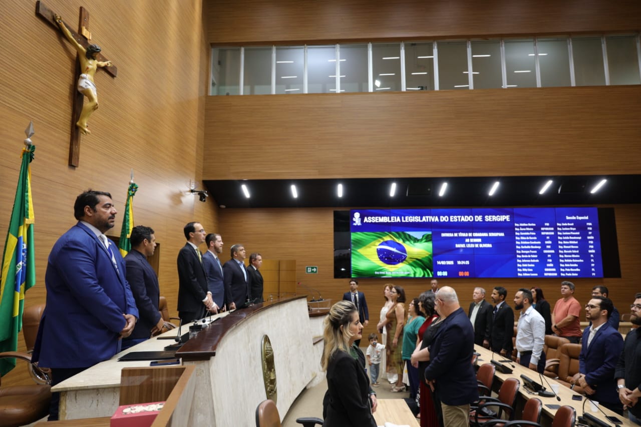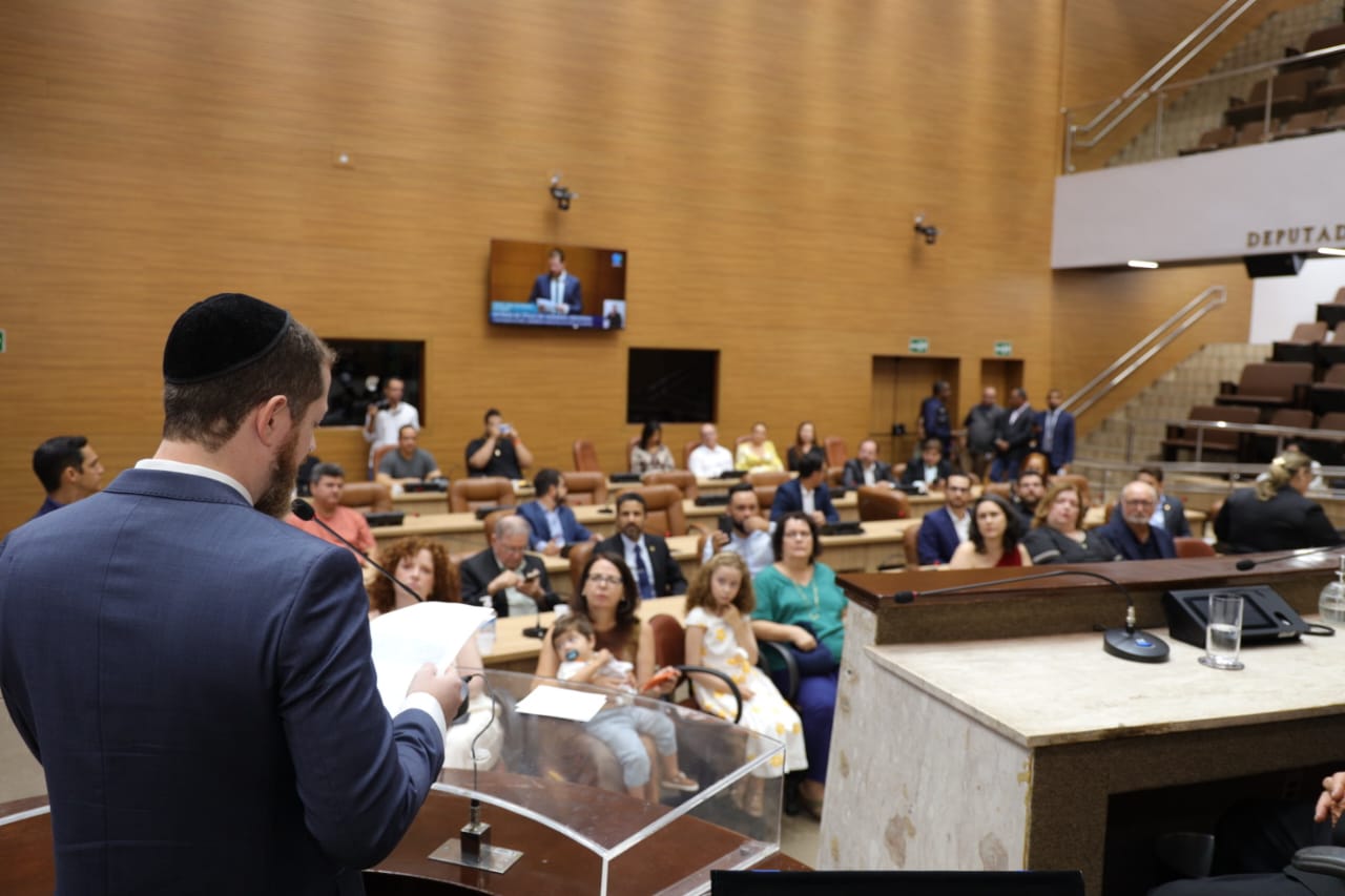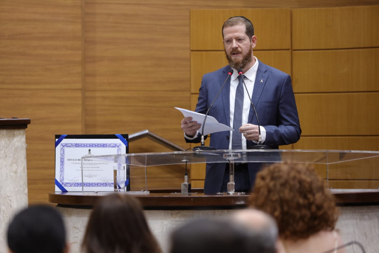 O deputado Luizão Donatrampi (União Brasil) entregou na manhã desta sexta-feira (14), no plenário da Assembleia Legislativa de Sergipe (Alese), o Título de Cidadão Sergipano ao advogado e vice-presidente da Sociedade Israelita de Sergipe, Rafael Leleu de Oliveira. Pernambucano de Recife, ele escolheu morar em Sergipe desde 2018, visando dar uma melhor qualidade de vida às filhas, iniciando atividades no ramo hoteleiro e fundando a Sociedade Israelita em 2021.